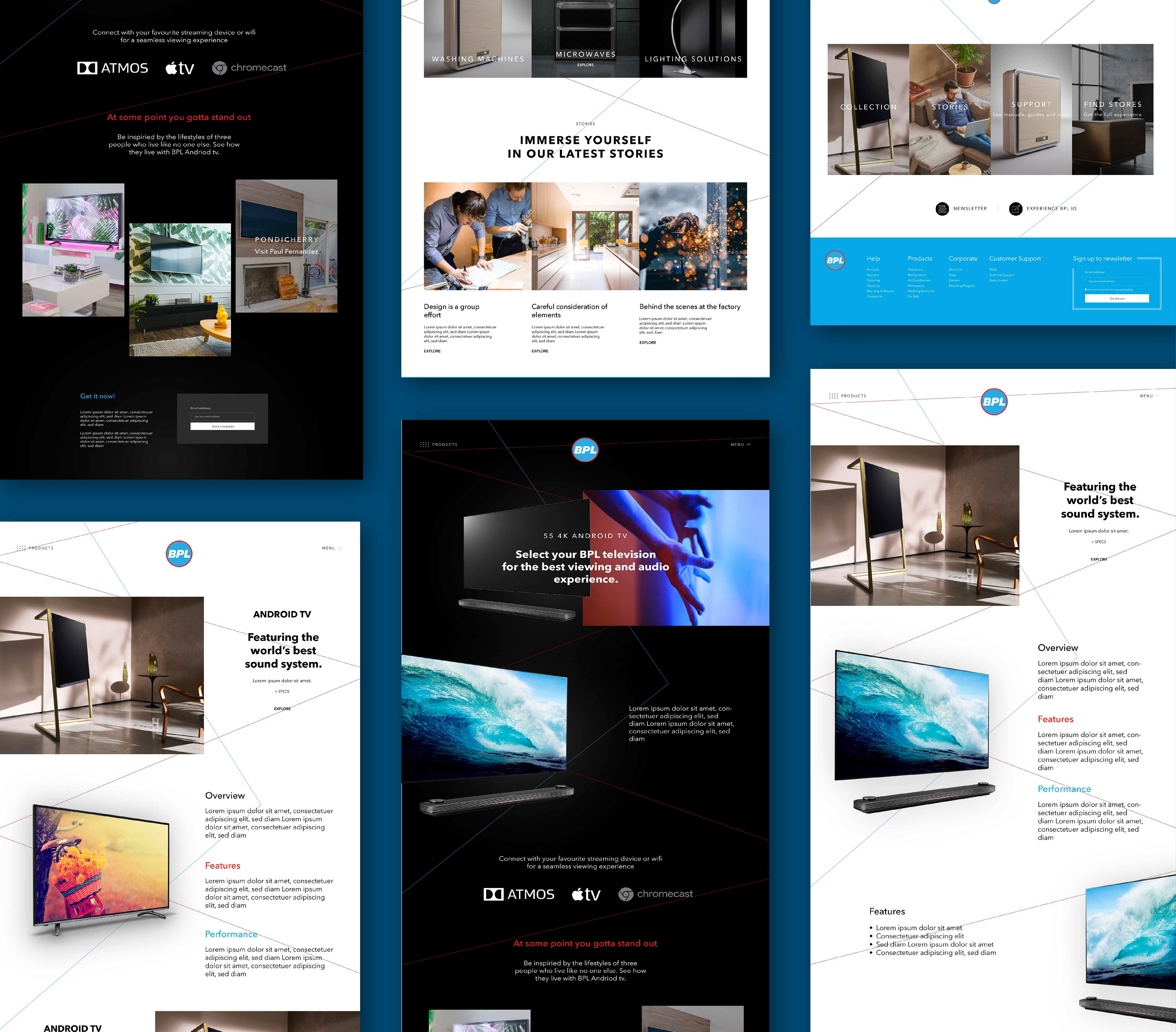 BPL is a household name in electronics in India. They are a diverse, highly ethical and precise manufacturer. We were given the exciting opportunity to redesign their website to give them an edge over more recent, suddenly more popular brands like Samsung. The brief was to redesign their website in a way that would not only highlight their products, but also bring out their relevance, quality and maturity in their industry.