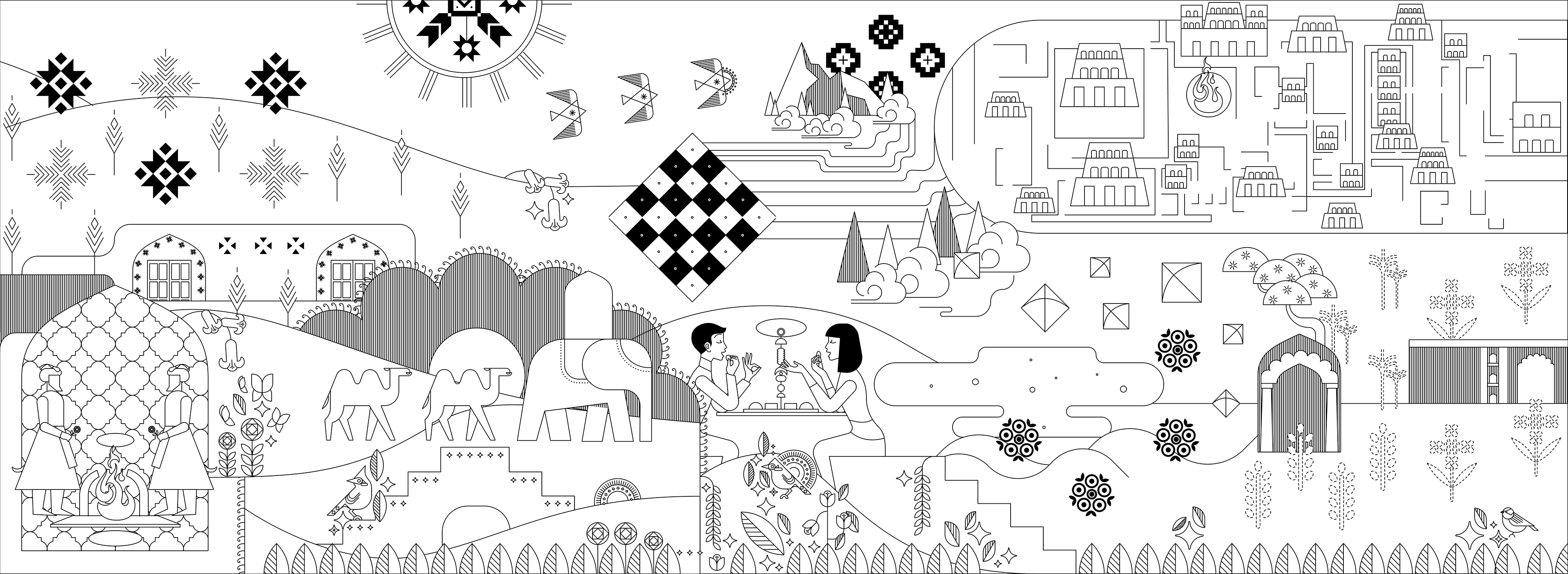 To ground the viewer within each geographical region, the mural integrates