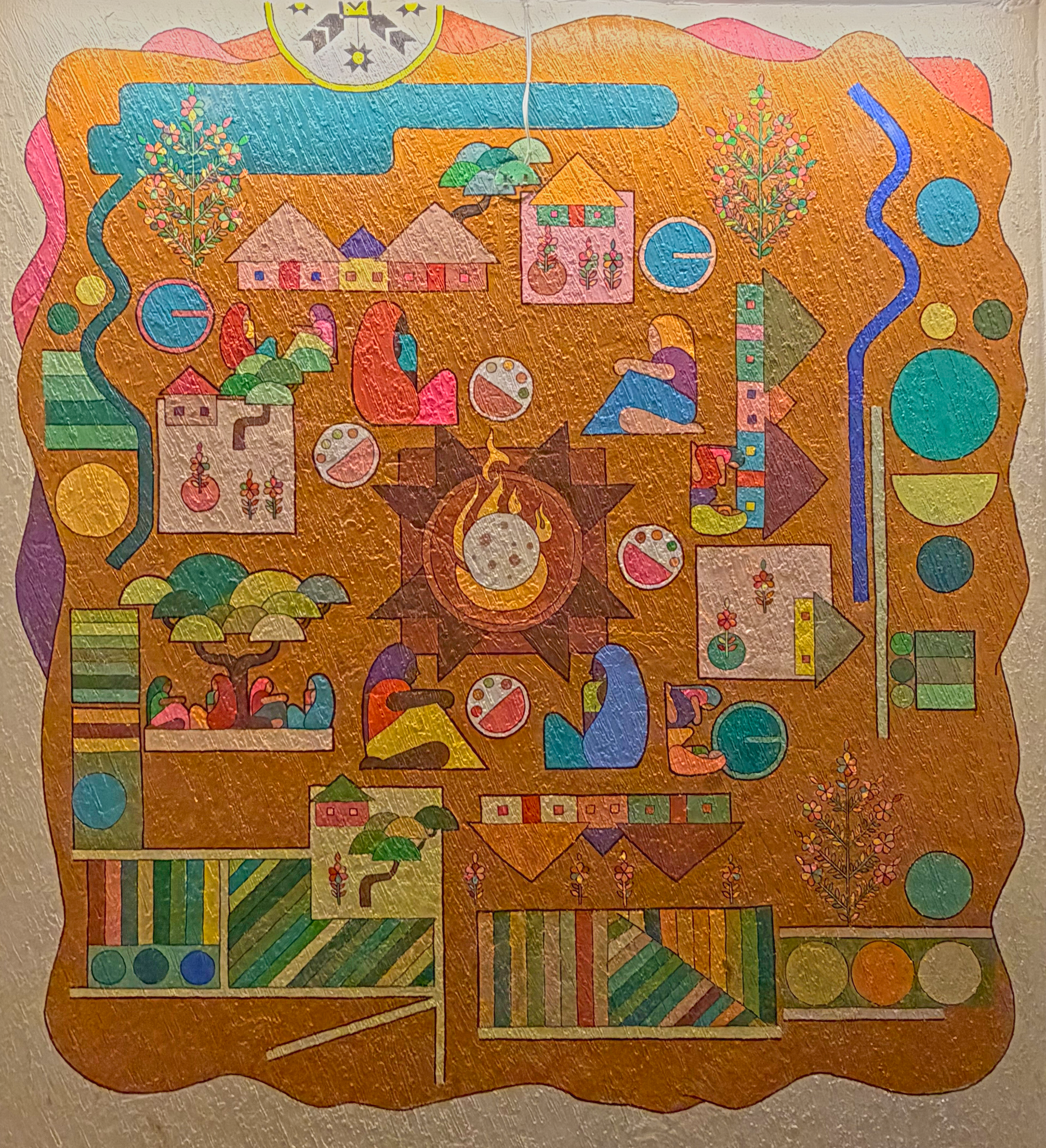 allowing textile traditions to inform the visual rhythm of the mural.